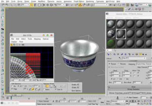 在软件使用上以3D Studio MAX R6 与Photoshop 为主。以下为制作青瓷虚拟复原的工作流程: